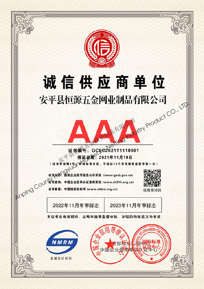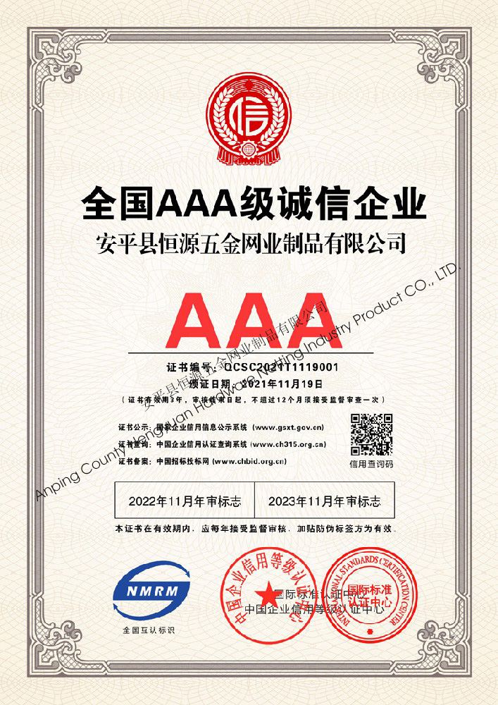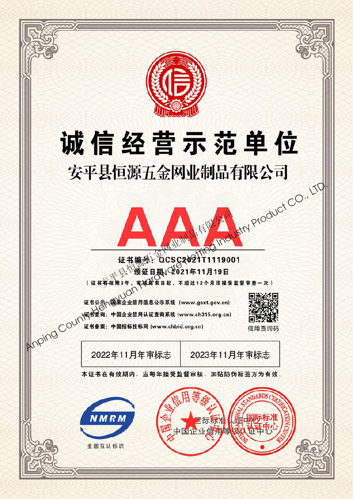 安平縣恒源五金網(wǎng)業(yè)制品有限公司,位于“絲網(wǎng)之鄉(xiāng)” 河北省安平縣,其前身為安平縣礦篩網(wǎng)廠,成立于2006年,注冊(cè)資金300萬(wàn)元,是建廠時(shí)間較早、生產(chǎn)銷(xiāo)量較大的礦篩網(wǎng)骨干企業(yè)。